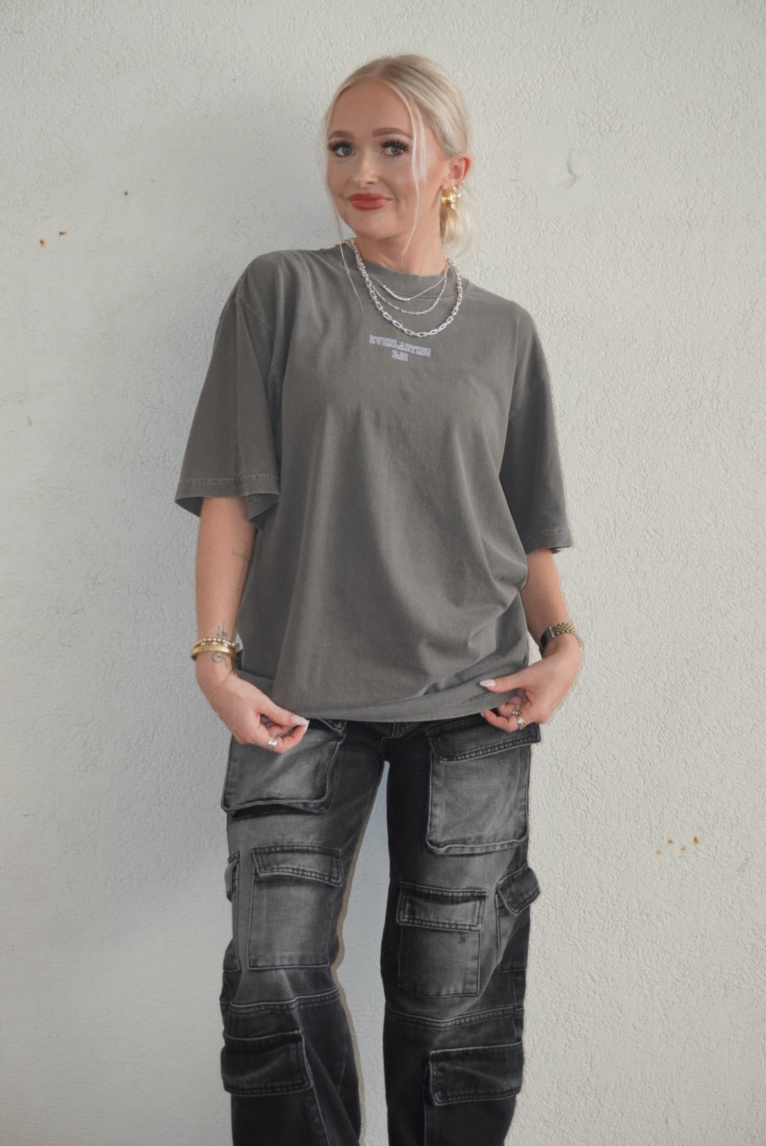 It’s just so cute and easy to wear. I love that. It’s a little bit shorter style. I love the faded colored look. I love this shirt. Excellent customer service. Jessy is the best.