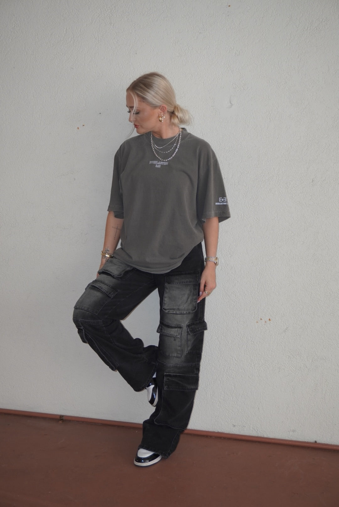 - Jessy is a 25”-26” waist wearing a size small for a baggy, lower waist fit