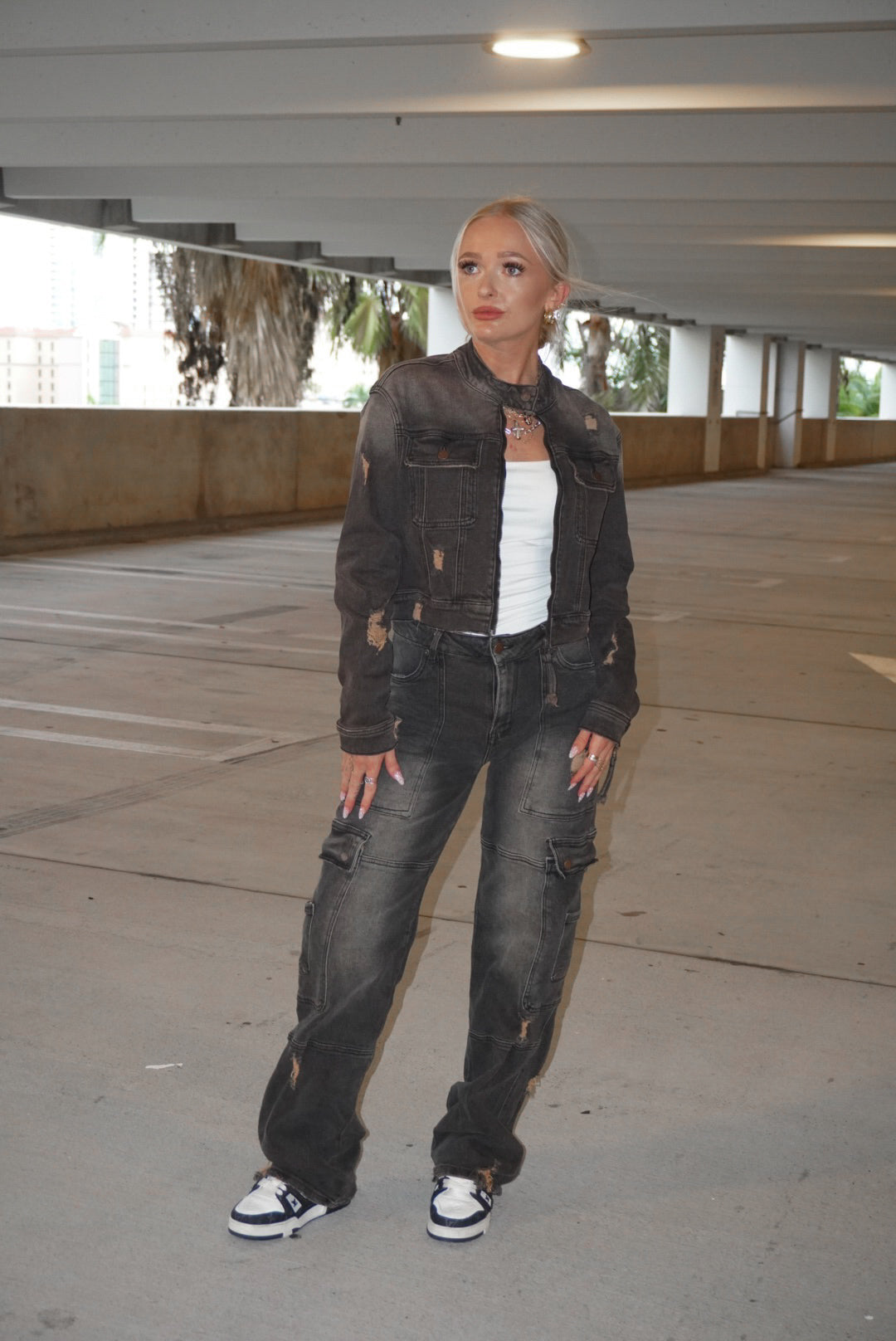 Washed Distressed Cargo Jeans
